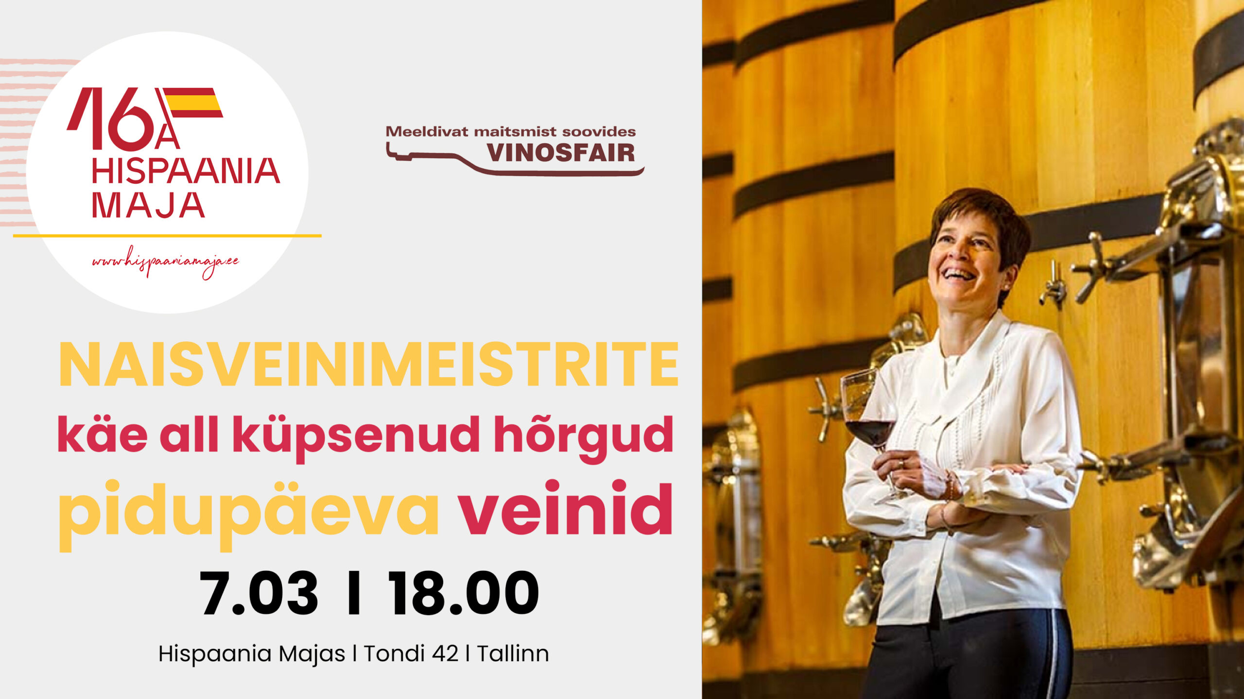 Laupäeval, 7. märtsil kell 18.00 ootame sind Hispaania Majja veiniõhtule, mis on pühendatud naistele Hispaania veinimaailmas.