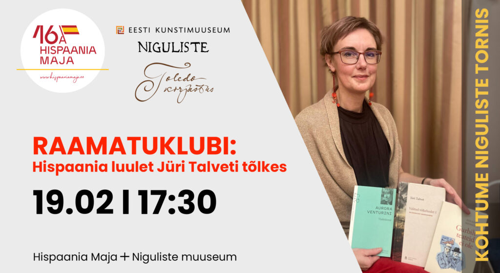 Raamatuklubis tutvume Jüri Talveti tõlgetega hispaania keelest, mis on ilmunud kogumikus „Valitud tõlkeluulet I: hiliskeskajast modernismini“ (TÜ kirjastus 2021). Jüri Talvet on Eesti üks olulisemaid hispaania kirjanduste asjatundjaid ning üks vähestest hispaaniakeelse luule tõlkijatest. Neid luuletõlkeid lugedes saame ühtlasi tagantjärele tähistada tema 80. juubelit. Raamatuklubis loeme luulenäiteid, mis pärinevad samast ajast kui näitusel „Dives Toletana“ eksponeeritud Toledo katedraali aarded, aga ka hilisemast perioodist, kuni 20. sajandi suurte luuletajateni välja.